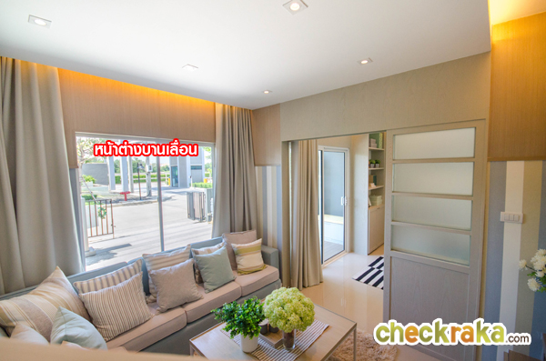 หากดูเปรียบเทียบกับบ้านเปล่าจะเห็นหน้าต่างบานเลื่อน เมื่อเปิดออกไปจะเป็นวิวหน้าบ้าน