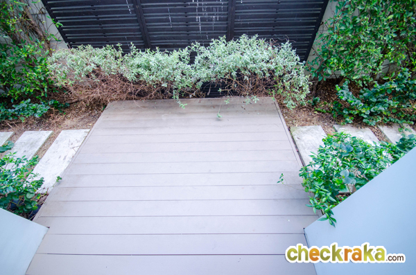 บรรยากาศสวนเป็นแนวยาวขนานไปกับแบบบ้าน เพิ่มความร่มรื่นให้กับโครงการ