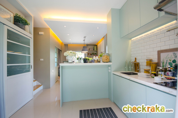 ถัดจากส่วนรับประทานอาหาร ทางโครงตกแต่งเป็น Pantry เตรียมอาหารไว้ ทำให้บ้านดูเป็นสัดส่วนมากขึ้น