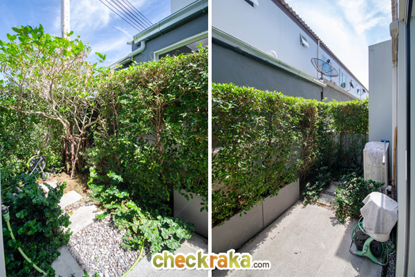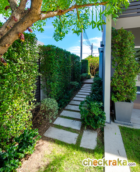 แล้วแต่การจัดสรรพื้นที่ของโครงการค่ะ บ้านหลังนี้ทางโครงการจัดสวน และทำทางเดินให้