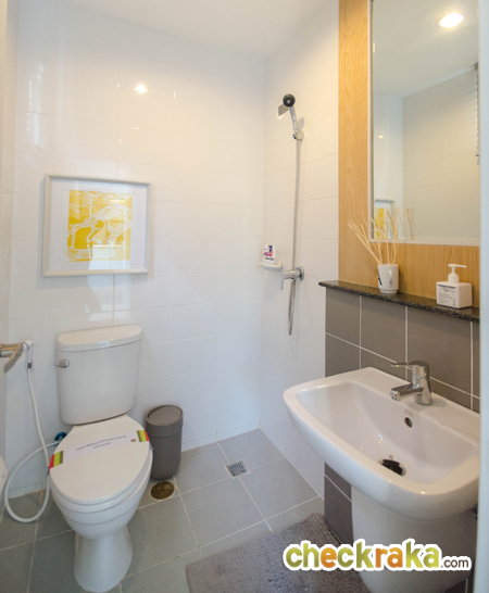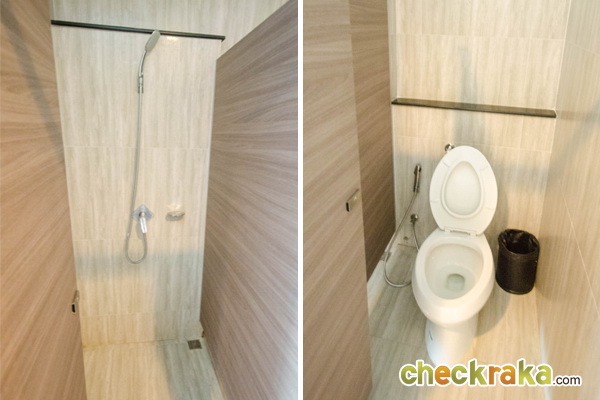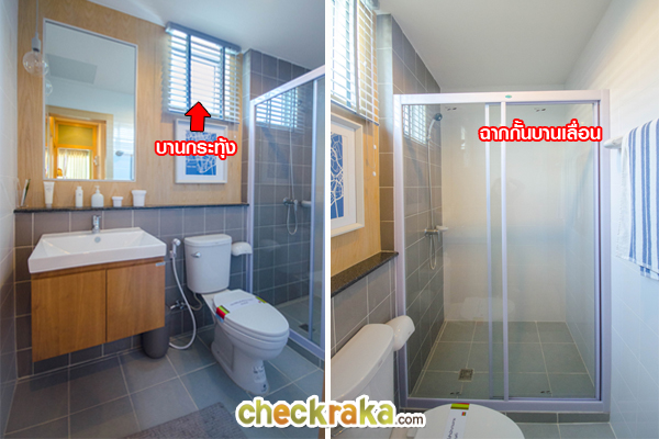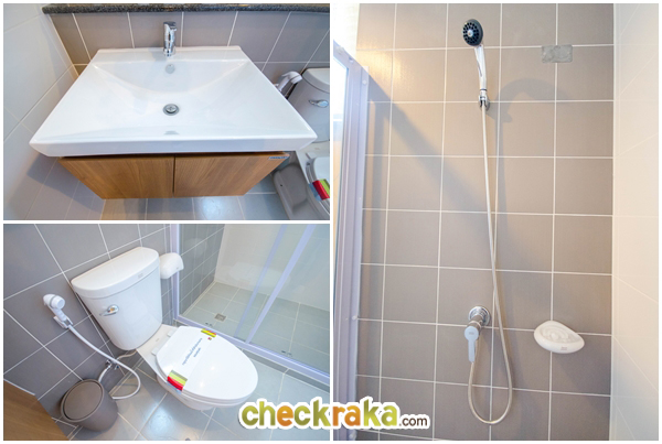 ภายในห้องน้ำมีสุขภัณฑ์มาให้ ทั้งอ่างล้างหน้า ก๊อกน้ำ โถสุขภัณฑ์ และฝักบัว ของ American Standard