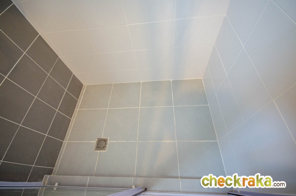 พื้นห้องน้ำในส่วนที่อาบน้ำ (ส่วนเปียก) กว้างประมาณ 36" x 48"