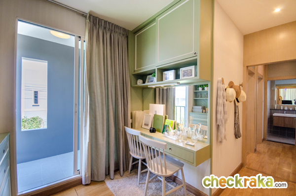 พื้นที่ก่อนจะถึงประตูยังสามารถตกแต่งเป็นโต๊ะอ่านหนังสือหรือโต๊ะเครื่องแป้งได้