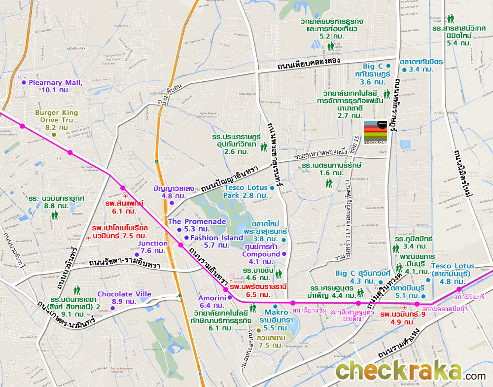 แผนที่ ที่ตั้งโครงการ เดอะคัลเลอร์ส พรีเมี่ยม วงแหวน - รามอินทรา (