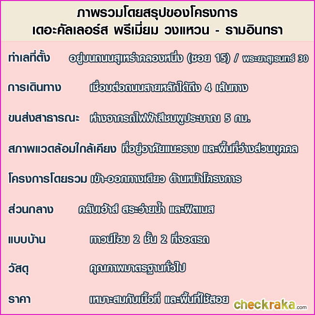 - ที่ตั้งโครงการ ถนนสุเหร่าคลองหนึ่ง (ซอย 15) / พระยาสุเรนทร์ 30 แขวงบางชัน เขตคลองสามวา กรุงเทพมหานคร 10510