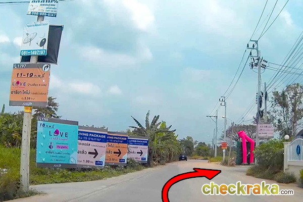 ขับเข้ามาตามถนนเรื่อยๆ จะเจอเวิ้งที่เป็นคลับเฮ้าส์ ให้เตรียมเลี้ยวขวาด้านหน้า