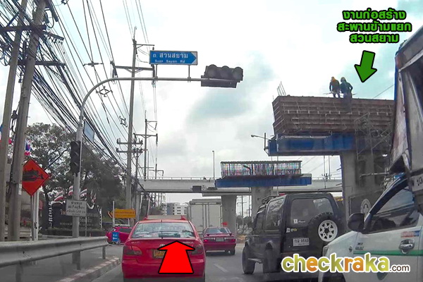 ผ่านแยกถนนสวนสยาม บริเวณนี้จะมีการก่อสร้างสะพานข้ามแยกสวนสยามอยู่ค่ะ