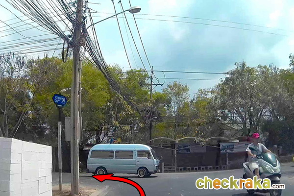 ตรงไปประมาณ 1.6 กม. จนสุดซอยแล้วเลี้ยวซ้าย
