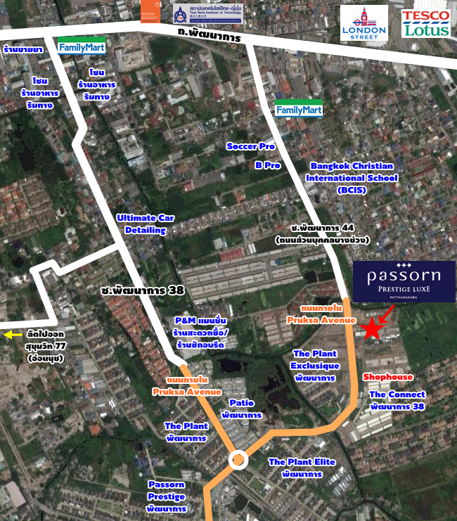 แผนที่สถานที่ และสภาพแวดล้อมใกล้เคียงโครงการ ภัสสร เพรสทีจ ลุกซ์ พัฒนาการ