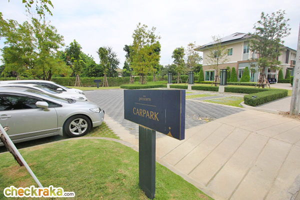 หลังจากผ่านซุ้มทางเข้ามาแล้ว จะเจอที่จอดรถสำหรับลูกค้าค่ะ เดินไปอีกนิดจะเป็น Sales Gallery และบ้านตัวอย่าง
