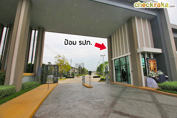 ซุ้มโครงการค่อนข้างใหญ่ค่ะ แบ่งช่องทางเข้าและออกชัดเจน มีป้อม รปภ.อยู่ตรงกลาง
