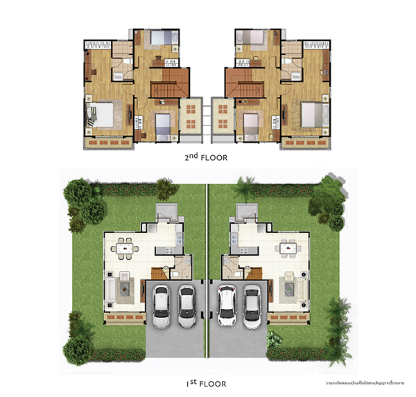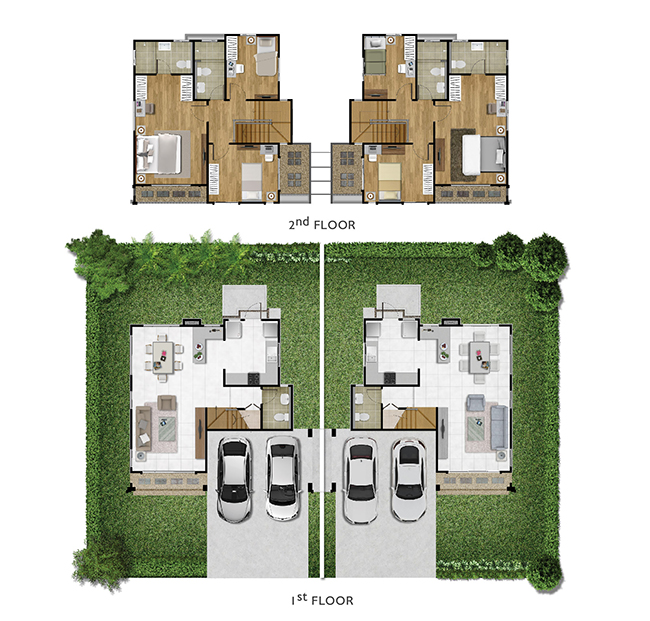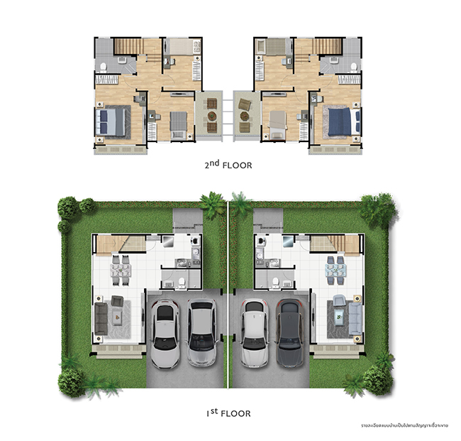 - แบบบ้าน RE-LIFE : บ้านแฝด 2 ชั้น พื้นที่ใช้สอย 121 ตารางเมตร (3 ห้องนอน 2 ห้องน้ำ 2 ที่จอดรถ)