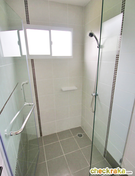 ห้องน้ำอีกห้องค่ะ แชร์กันระหว่างห้องนอน 2 และห้องนอน 3 ทางโครงการติดฉากกั้นอาบน้ำมาให้เช่นกันค่ะ
