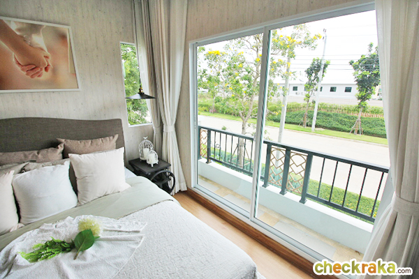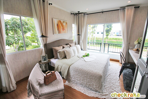 มาดู Master Bedroom กันค่ะ มีพื้นที่ใหญ่ที่สุด มีหน้าต่าง 2 บานและมีระเบียงออกไปด้านนอกได้