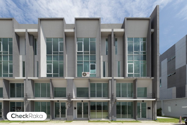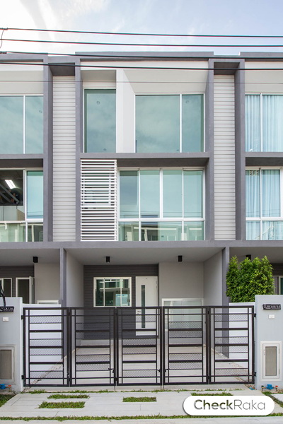 หน้าบ้านของทาวน์โฮม 2 ชั้น มีจุดเด่นอยู่ที่ดีไซน์ด้านหน้าที่ดูเหมือนเป็นทาวน์โฮม 3 ชั้น