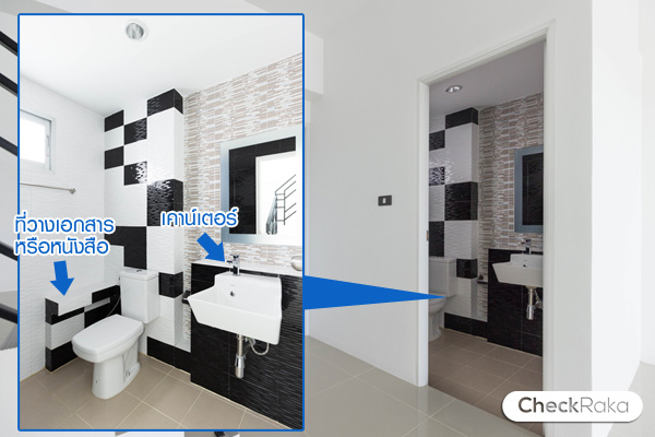 ห้องน้ำชั้น 1 ได้รับการออกแบบให้เป็นพื้นที่ส่วนแห้งทั้งหมด ที่พิเศษคือมีที่อ่านหนังสือ