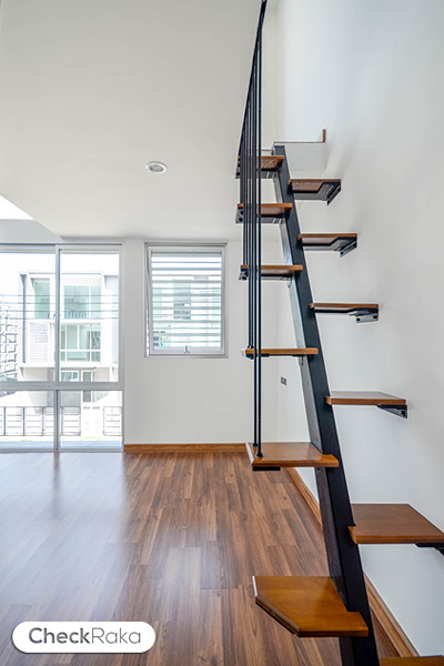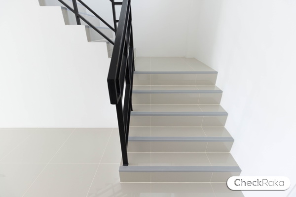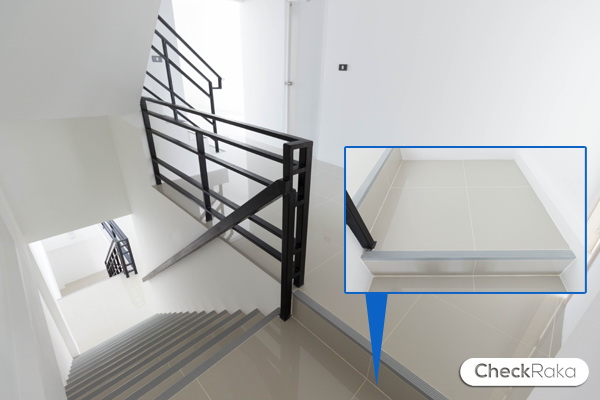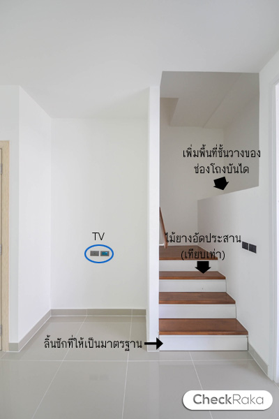 สำหรับบันไดชั้นลอย ตามมาตรฐานโครงการให้ประมาณนี้เลย สามารถตกแต่งเพิ่มเติมได้อีก