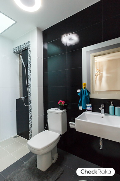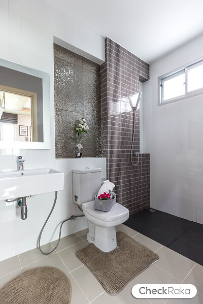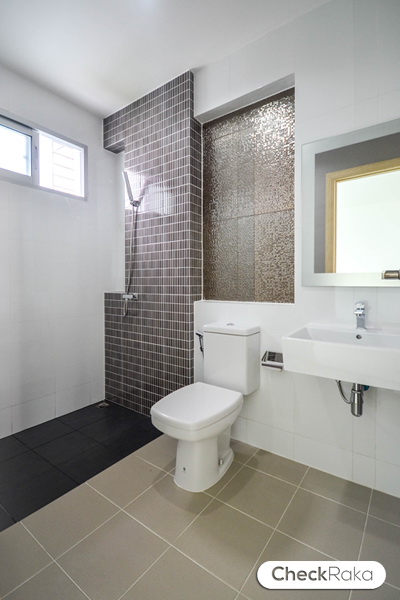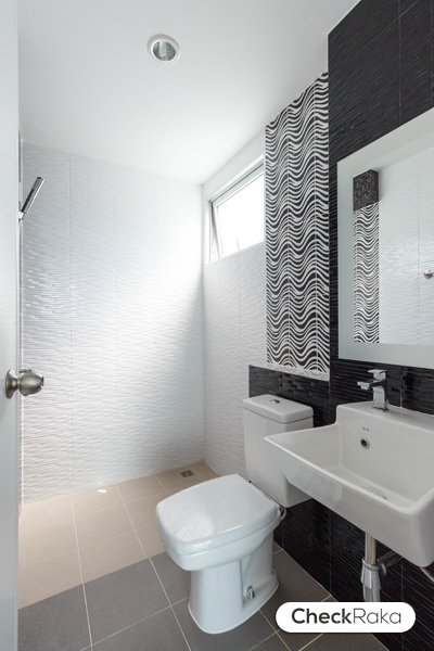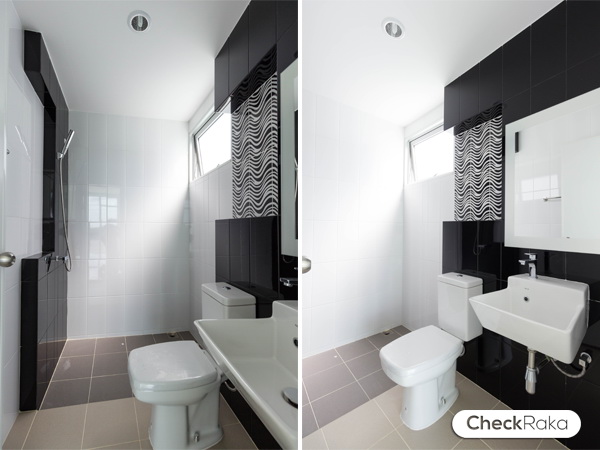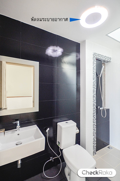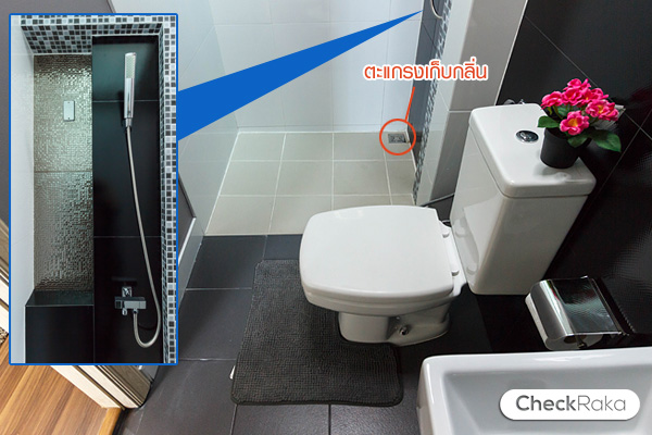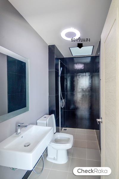 ในห้องน้ำมีช่องรับแสงอยู่บริเวณส่วนเปียก เพื่อให้มีแดดช่วยกำจัดความชื้นภายในห้องน้ำ