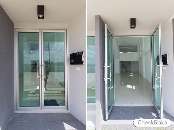 ประตูทางเข้าเป็นแบบบานสลิง กระจกเขียวตัดแสง
