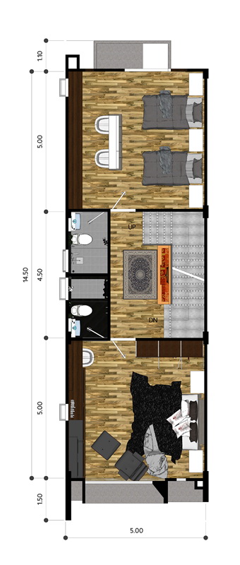 แปลนบ้านชั้นลอยของทาวน์โฮม 2 ชั้น