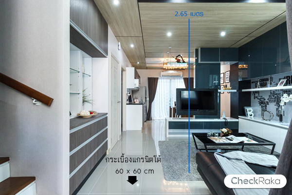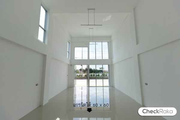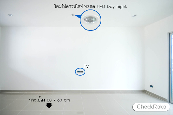 พื้นบ้านเป็นกระเบื้องแกรนิตโต้ ขนาด 60 x 60 cm โคมไฟดาวน์ไลท์