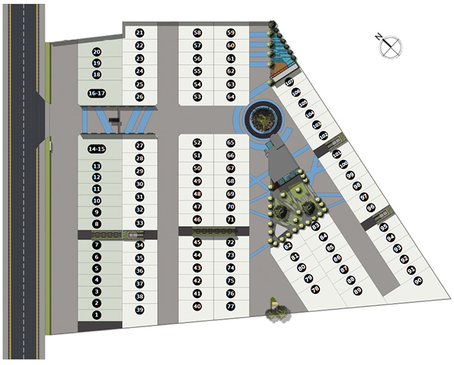 โครงการอยู่ในซอยประชาอุทิศ 131 แปลนของโครงการเป็นรูปคล้ายๆ สี่เหลี่ยมคางหมู ภายในโครงการมีแบบบ้านทาวน์โฮม 2 ชั้นอยู่ 87 หลัง และแบบบ้านโฮมออฟฟิศอีกประมาณ 18 หลัง รวมทั้งหมด 105 หลัง โดยแบบบ้านโฮมออฟฟิศจะอยู่แนวด้านหน้าของโครงการทั้งหมด และทาวน์โฮม 2 ชั้นจะอยู่ด้านใน ในส่วนของสวนสาธารณะ และสระว่ายน้ำ จะอยู่ค่อนมาด้านหลังของโครงการ