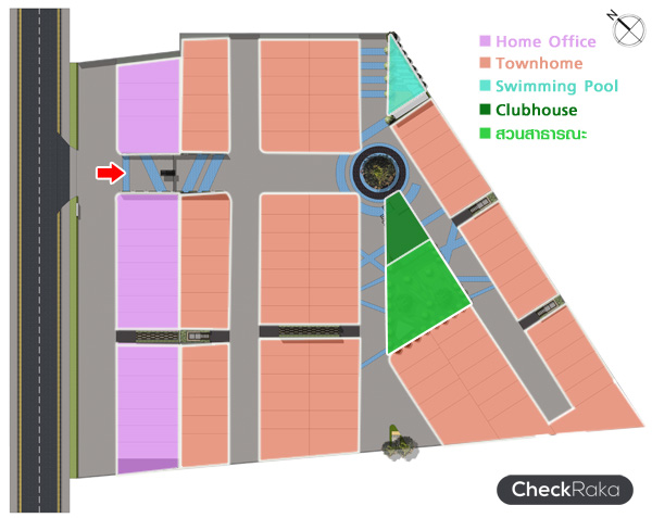จาก Master Plan จะเห็นว่า คลับเฮ้าส์ และสระว่ายน้ำนั้นจะอยู่แยกส่วนกันค่ะ