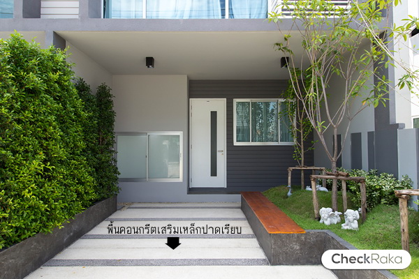พื้นหน้าบ้านเป็นพื้นคอนกรีตเสริมเหล็กปาดเรียบ