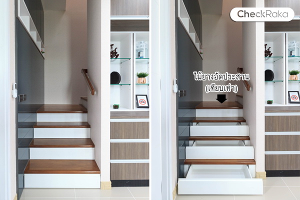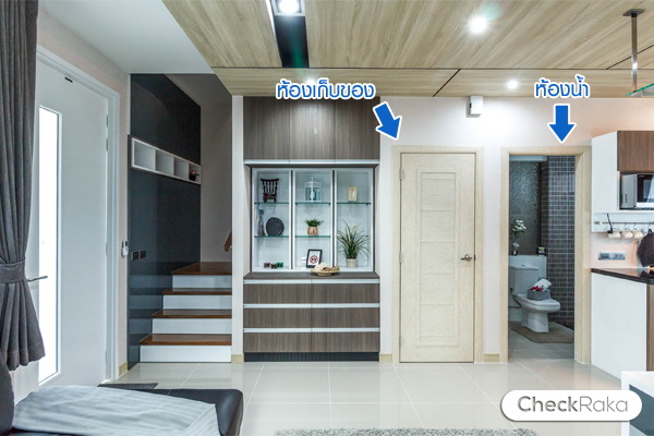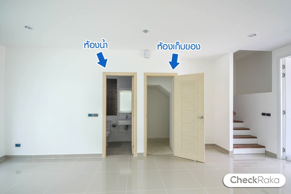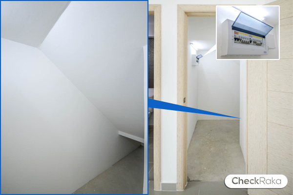 มีห้องเก็บของใต้บันไดอยู่ติดกับห้องน้ำ จะเห็นว่าด้านข้างห้องเก็บของเป็นช่องเปล่า
