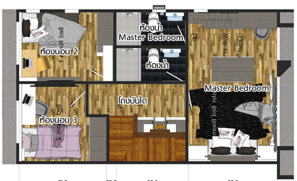 ภาพจำลองภายในของแบบบ้านที่มีชั้นลอย