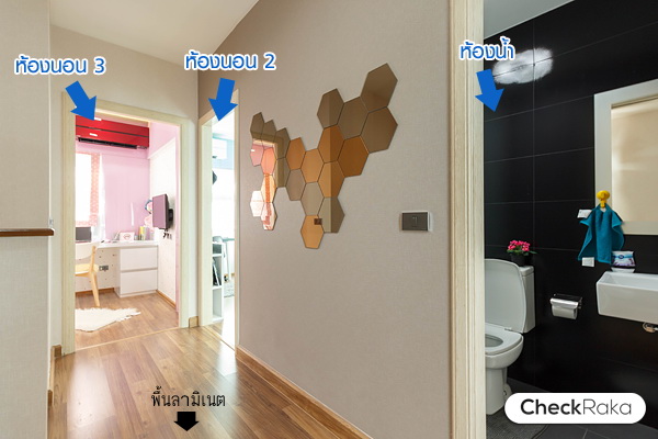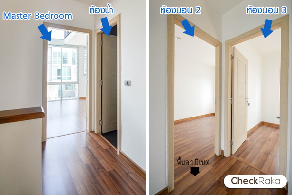 Master Bedroom ของบ้านเปล่าจะอยู่ด้านซ้ายมือ ห้องนอนที่เหลืออยู่ด้านขวา
