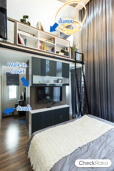 ใต้ชั้นลอยเป็นพื้นที่ Walk in Closet และห้องน้ำในตัว