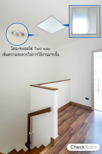 บันไดชั้นสองด้านบนมีช่องรับแสง และหลอดไฟ Two Way เพิ่มความสะดวกในการใช้งาน