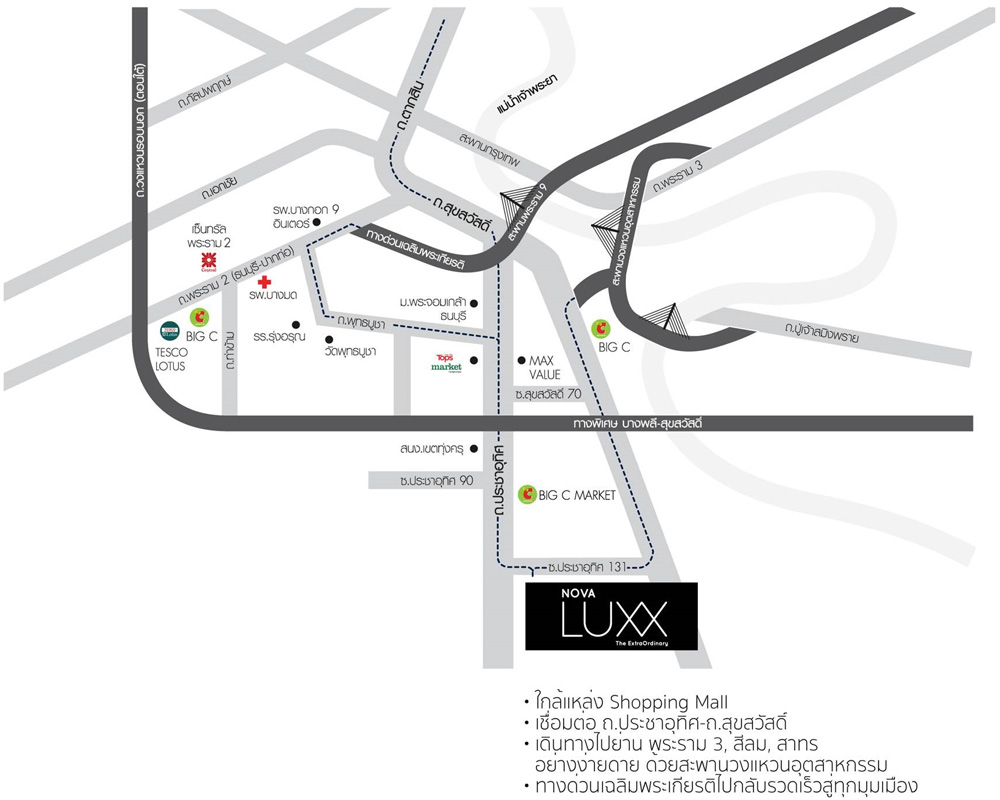 ภาพแผนที่โครงการแจกแจงให้เห็นระยะใกล้-ไกลของโครงการกับสถานที่