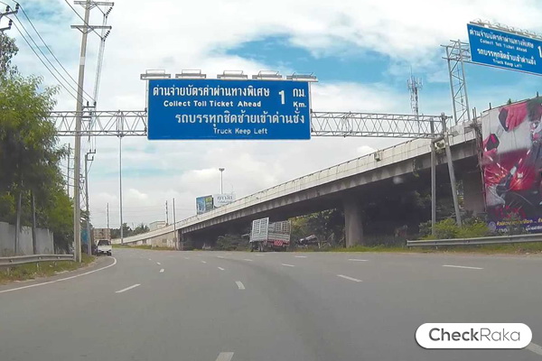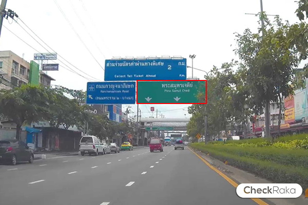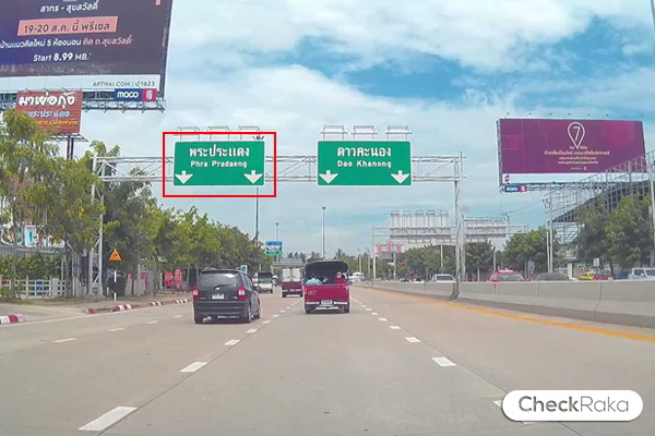 ยังคงอยู่บนถนนวงแหวนอุตสาหกรรม ขับไปตามป้ายทางไปพระประแดง