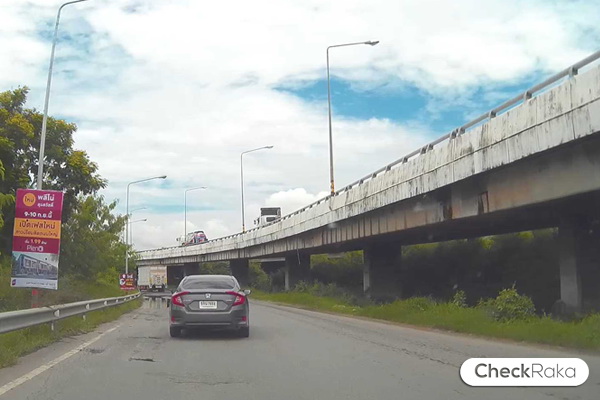 แล้วขับเลียบสะพาน ตรงไปจนเจอทางแยก