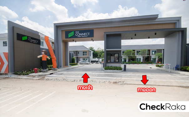 ซุ้มประตูโครงการมีขนาดใหญ่ พร้อมชื่อโครงการ The Connect Rama 5 - Nakhon in ดีไซน์สวย โทนสีเข้ม