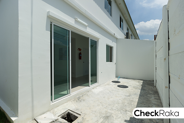 ด้านหลังเป็นประตูบานเลื่อนขนาดใหญ่เปิดออกไปลานซักล้างหลังบ้าน