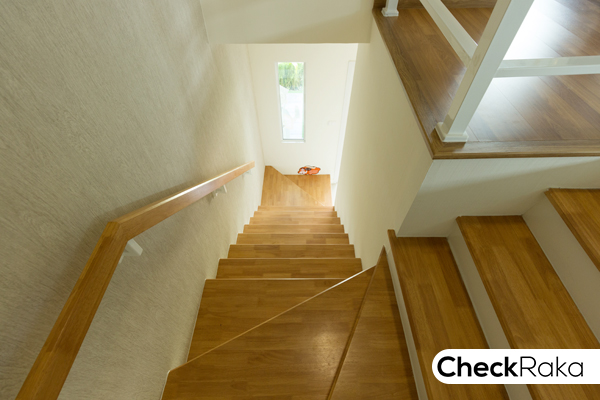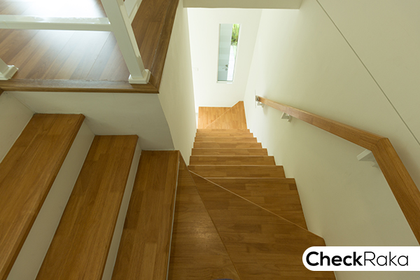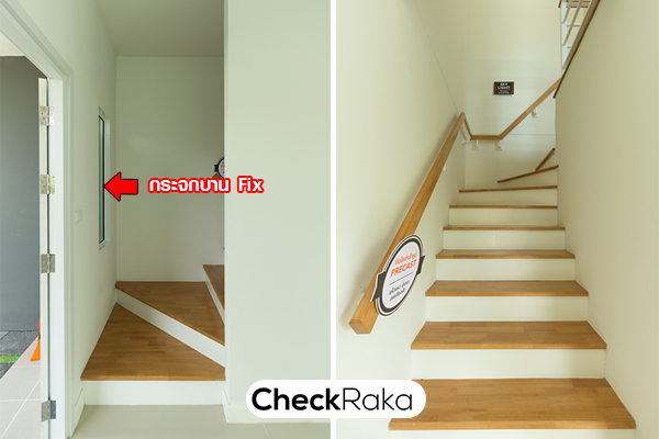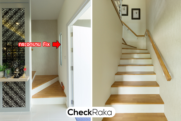 บันไดทางขึ้นชั้น 2 ตรงทางขึ้นมีกระจกบาน fix สำหรับรับแสงธรรมชาติให้ 1 บานค่ะ