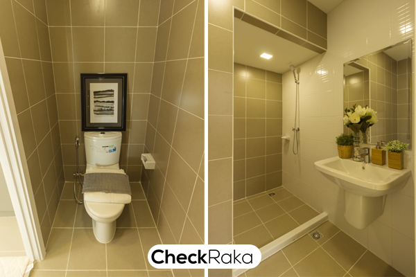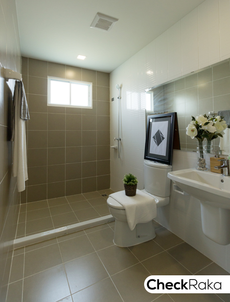 แยกส่วนเปียก/แห้งให้ และมีบานเลื่อนระบายอากาศด้านหลังให้ 1 บานสำหรับบ้านหลังมุม