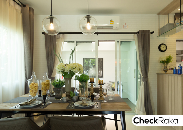 พื้นที่สำหรับจัดวางโต๊ะรับประทานอาหารของที่นี่ สามารถวางโต๊ะรับประทานอาหารขนาด 4-6 ที่นั่งได้ ไม่คับแคบจนเกินไป