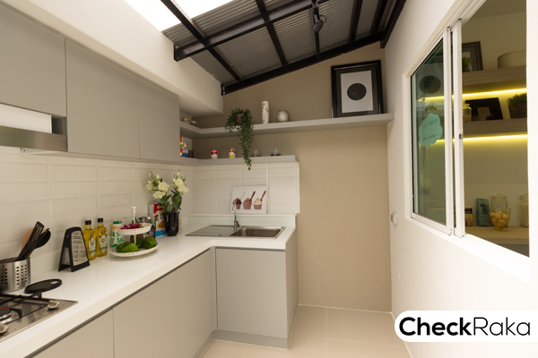 ภายในตกแต่งเป็นเคาน์เตอร์ครัวแบบตัว L