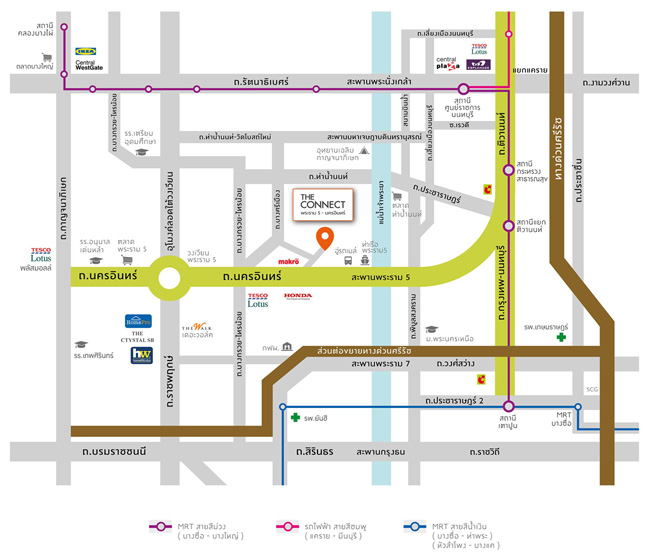 - ที่ตั้งโครงการ : บางไผ่ซอย 21 ถนนนครอินทร์ ตำบลบางไผ่ อำเภอเมืองนนทบุรี จังหวัดนนทบุรี 11000