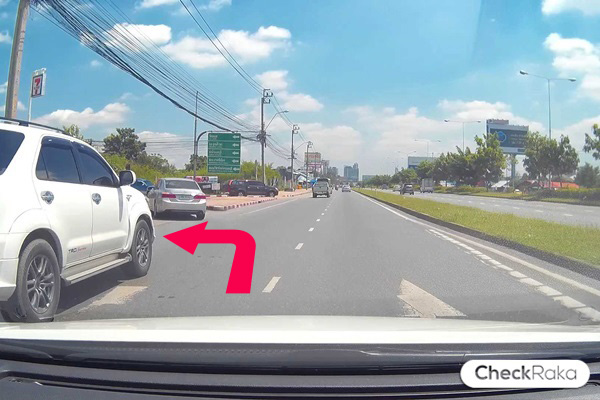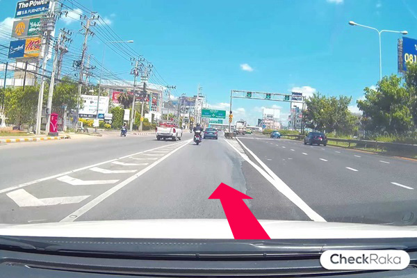 เบี่ยงขวาเข้าเลนกลาง ถ้าเลนซ้ายจะเป็นที่กลับรถจ้า