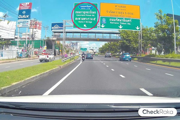 เจอป้ายสะพานพระราม 5 ให้เตรียมออกขวา