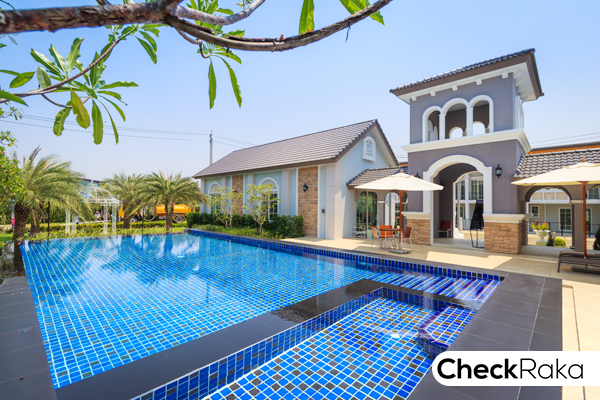 ด้านหลังของคลับเฮ้าส์จะเป็นสระว่ายน้ำขนาด 8 x 15 เมตร