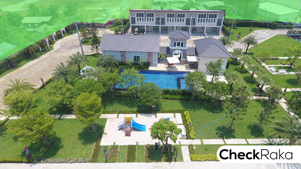 ภาพจากมุมสูง แสดงให้เห็นขนาดของ คลับเฮ้าส์ และสวนส่วนกลาง