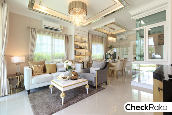 สไตล์อังกฤษ เน้นโทนสีขาว ตัดกับลายดำน้ำตาลเล็กน้อย ให้ความรู้สึกสบายตา หรูหรา แต่อบอุ่น