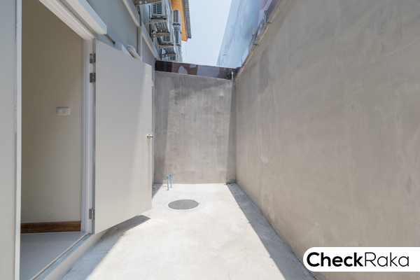 ระเบียงห้องมีขนาดพอเหมาะ สามารถออกมารับลม ชมวิวได้นะคะ มีราวเหล็กกันตกไว้ให้