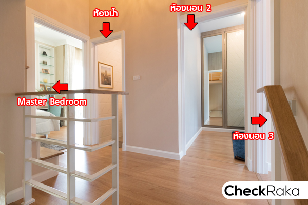 ขึ้นมาที่ชั้น 2 จะพบฟังก์ชัน 3 ห้องนอน 2 ห้องน้ำ พื้นชั้นนี้ปูด้วยลามิเนตหนา 8 มิลลิเมตร